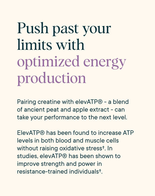 We’ve combined the purest form of creatine monohydrate Creavitalis® with clinically-studied powerhouses D-Ribose, Taurine, and ElevATP® to fuel both body and mind.