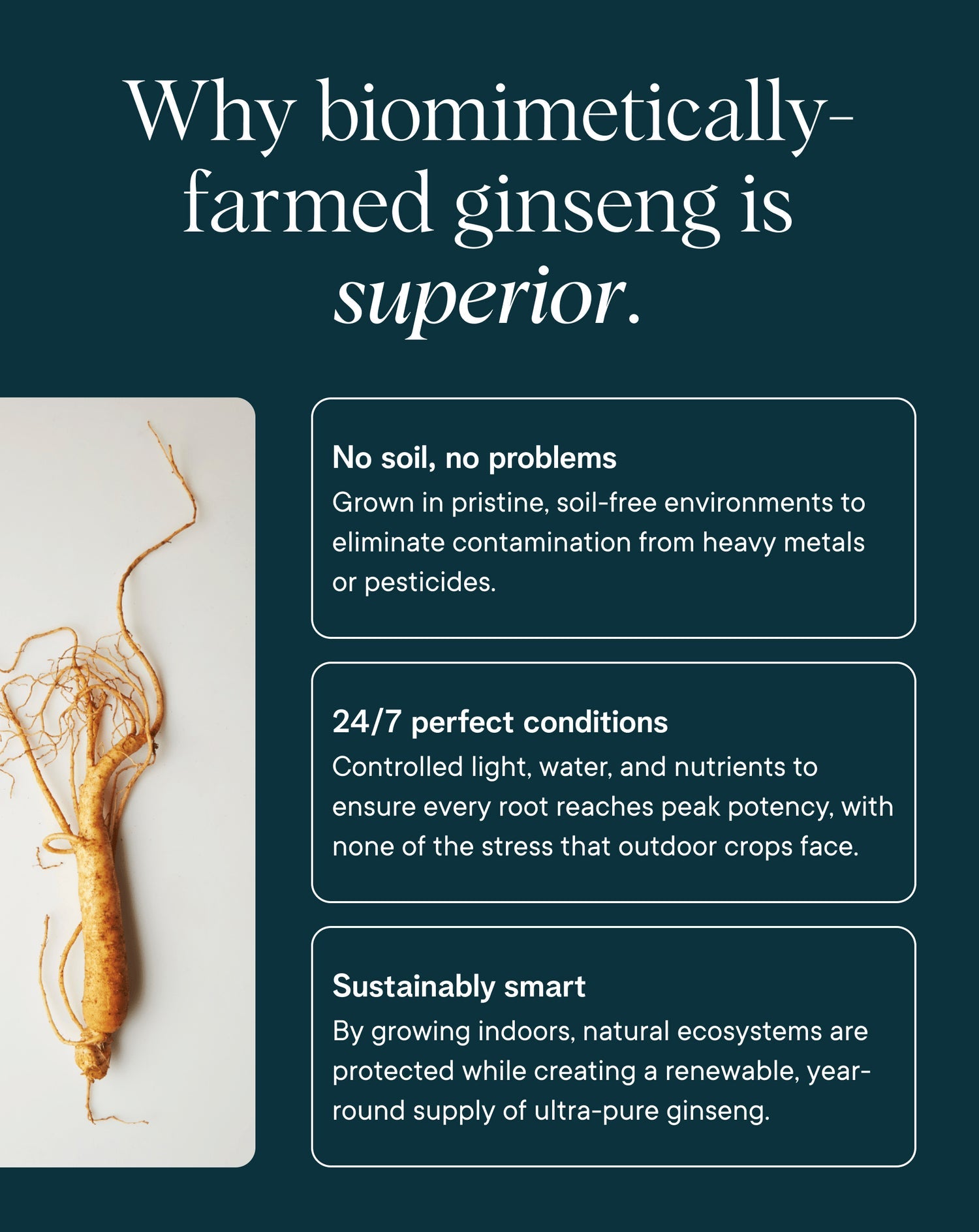 For centuries, ginseng has been celebrated for its ability to improve resilience and vitality, especially during times of stress. Yet, traditional ginseng farming often falls short—contaminated by pesticides and heavy metals, plagued by inconsistent quality, and reliant on unsustainable practices like deforestation.